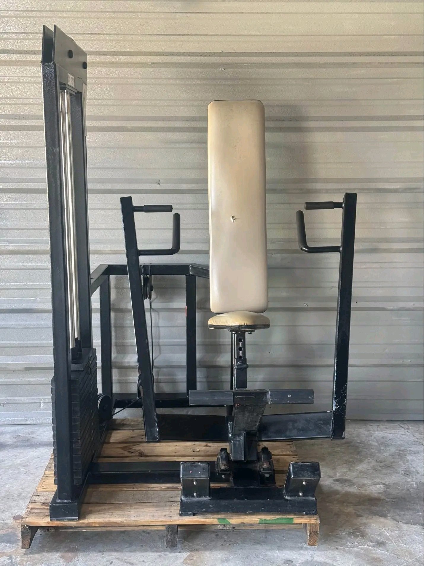 Promaxima chest press machine. 300lb weight stack, neutral and regular handle options, and has the foot pedal start to really give your chest that deep stretch on the exercise movement. $700 I can deliver for additional cost